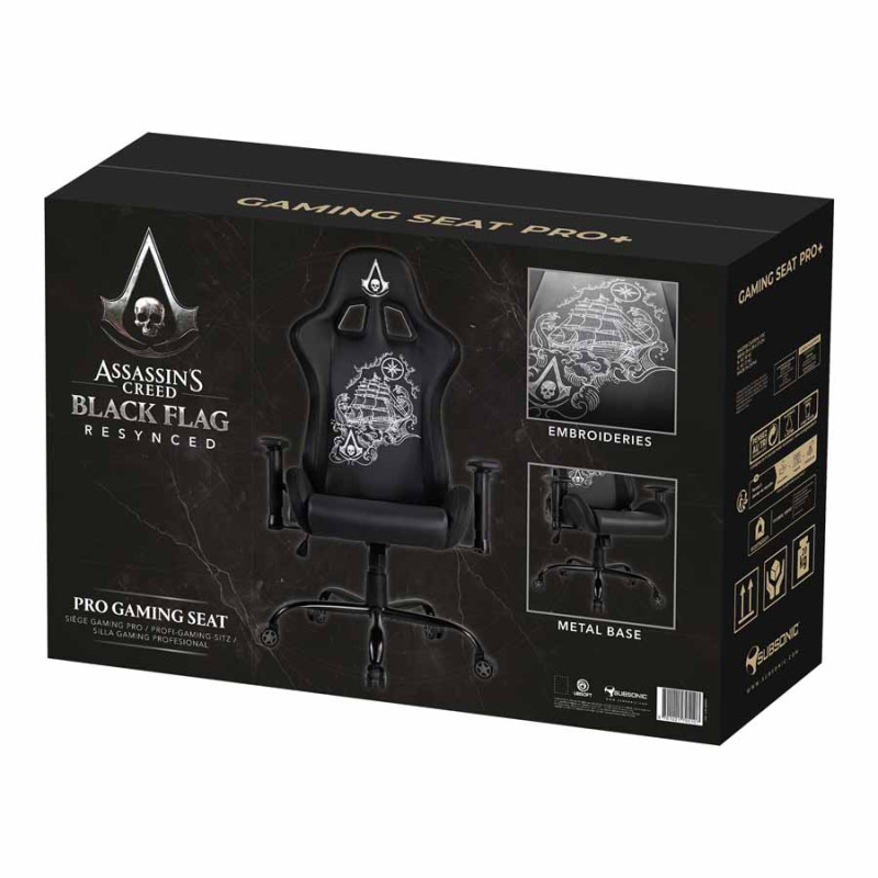 Luce tu estilo con esta silla gaming con los colores del nuevo Assassin’s Creed Black Flag Resynced. Su cuidado diseño, a medio camino entre el espíritu pirata y los acabados de primera calidad, la convierte en un auténtico elemento central para tu setup. Los bordados y los detalles visuales están pensados para los fans que desean prolongar la experiencia de juego hasta su propio setup gaming. Más que una simple silla gaming, es una pieza que aporta carácter a tu instalación.
